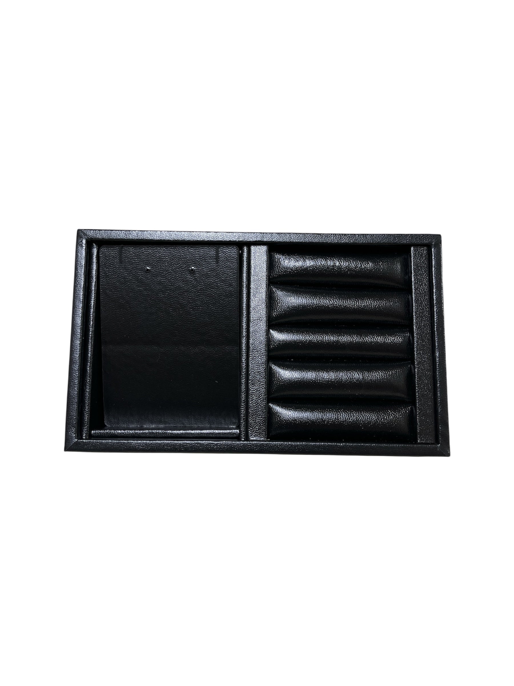 Mini bandeja mista, cartela para par de brinco e colar, e um lado com disposição para anel.